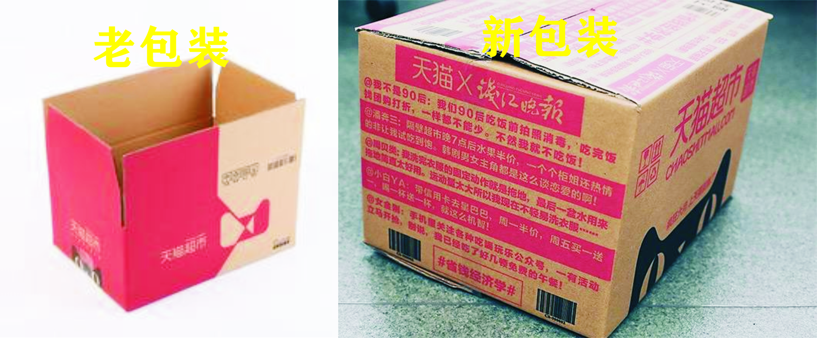 天貓超市的配送紙箱讓盒子變得有趣起來之后,就不斷有新的嘗試。由天貓自營平臺“天貓超市”發(fā)出的快遞盒變成了“盒子報(bào)”,消費(fèi)者在天貓超市下單后,收到的可能是一份印刷了知乎、一個、ELLE、《錢江晚報(bào)》或《南方周末》特色資訊的快遞盒,至于收到的是“知乎神回復(fù)”版盒子還是“《南方周末》新聞版”盒子抑或是韓寒監(jiān)制的“一個版”盒子,主要取決于消費(fèi)者下單寶貝的總體積。