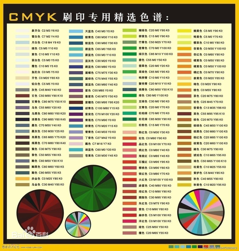 1、CMYK——即青、洋紅(品紅)、黃、黑四種色彩,每種顏色數(shù)值為0-100,在印刷中通??捎蛇@四種色彩組合成成千上萬種顏色,最典型的就是畫冊和彩色宣傳單。